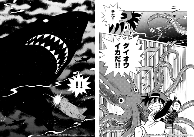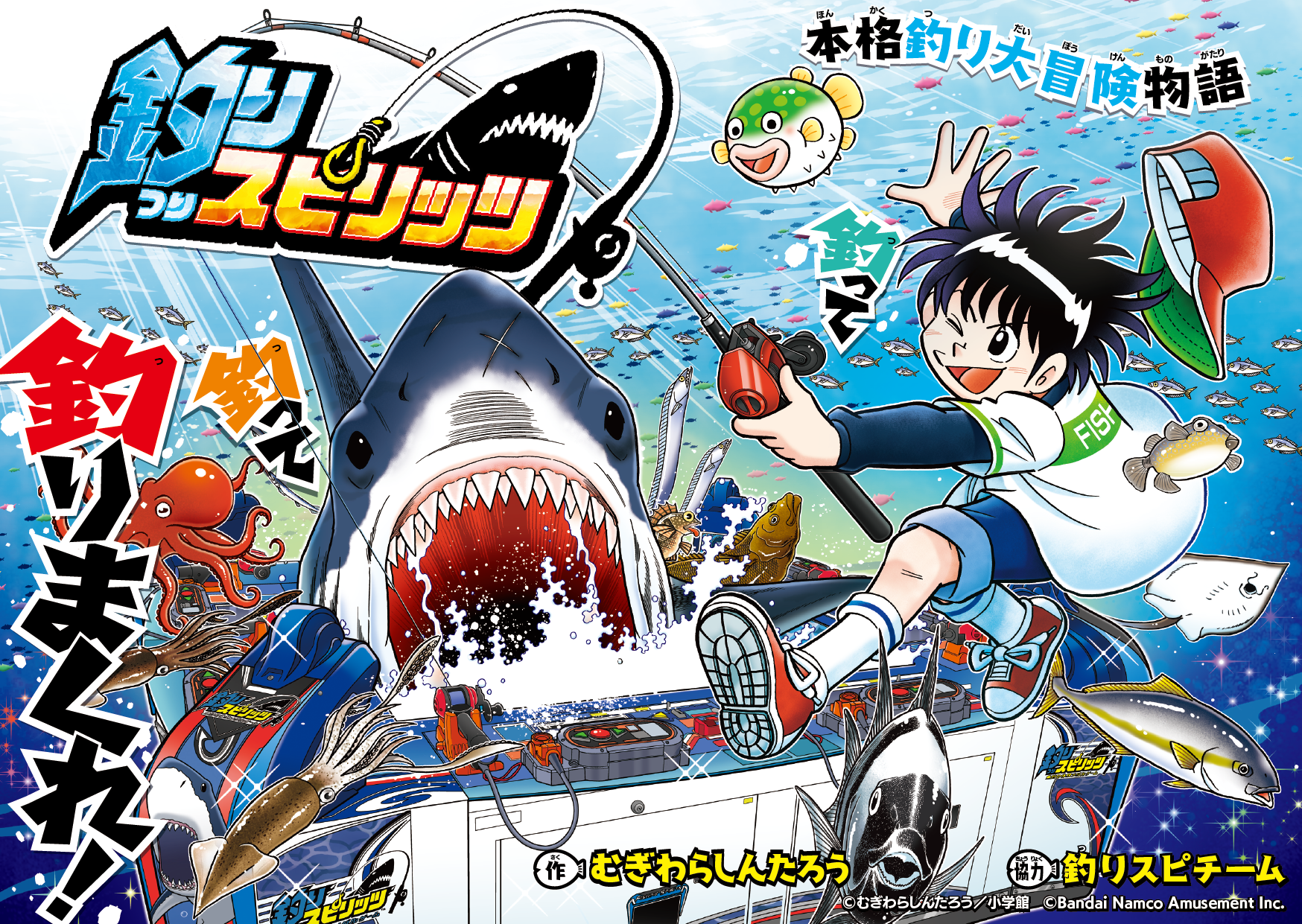 ゲームセンターや家庭用ソフトで大人気のゲーム『釣りスピリッツ』がコロコロコミックのマンガも登場!巨匠むぎわらしんたろう先生によって描かれる主人公・竜宮海(たつみやかい)と巨大魚たちとの釣りバトルは必見です。