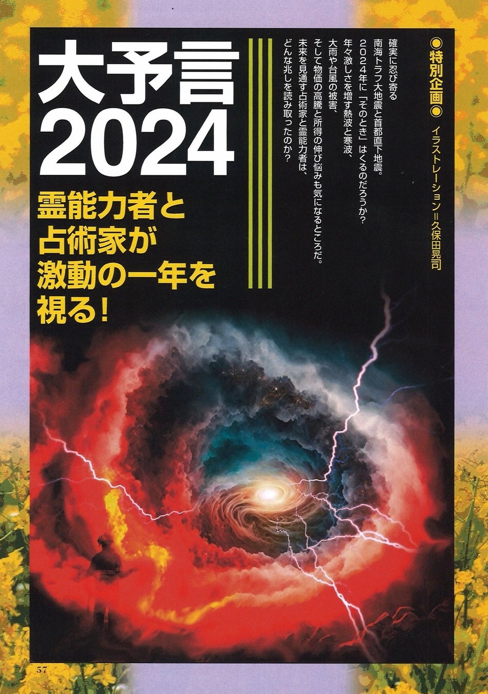また、「大予言2024」という特別企画では、南海トラフ大地震や首都直下型地震などの予測や、熱波や寒波、物価の高騰などの未来の兆しについて占術家や霊能力者の見解を紹介しています。