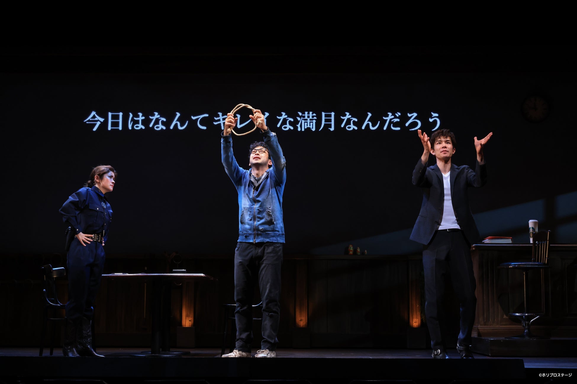 舞台では英語の台詞に日本語字幕が表示され、観客も一緒に進化していく作品です。