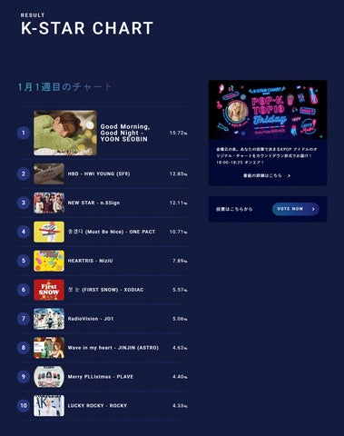 - 「KSTAR CHART」はKPOPアイドルのオリジナルチャートで、投票数に基づいたポイントでランキングが決まる。