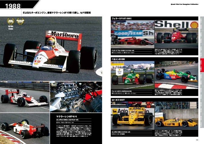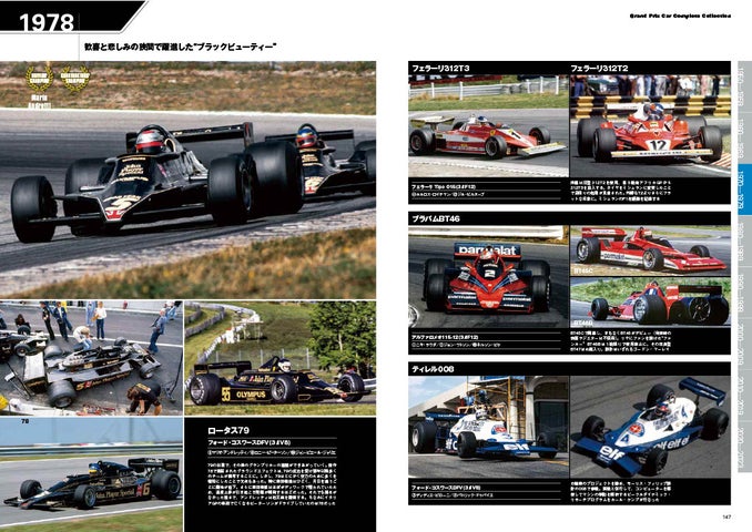 F1カーの進化や魅力を感じることができる究極のカタログ本で、総収録台数は1500台以上です。