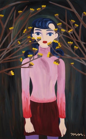 中村桃子は、独自の世界観で表現したエモーショナルな「女性像」と生物的な特徴をもつ「草花」をモチーフにした作品を制作しています。