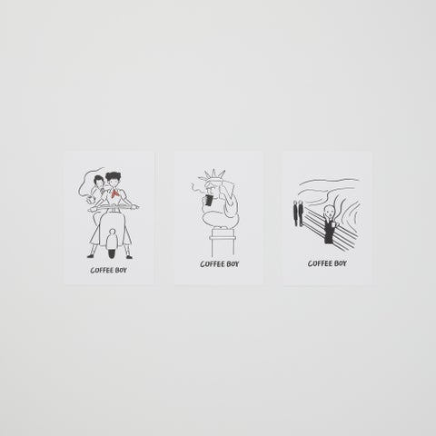 『COFFEE BOY』はシンプルでユーモア溢れるイラストで知られ、コーヒーをテーマにした作品が人気です。
