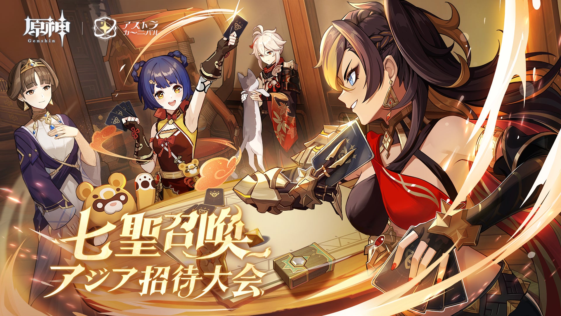 - 日本リージョン大会、中国大陸開催、上海、賞金総額、50万人民元、990万円、@AstraCarnivalJPチャンネル、オープンワールドRPG、エリア、キャラクター、ゲームコンテンツ、対戦型カードゲーム、七聖召喚、公式国際大会、コミュニティ大会、グループリーグ戦、トーナメント戦、トロフィー、25万人民元、490万円、クロスプラットフォームのデータセーブ機能、マルチプレイ