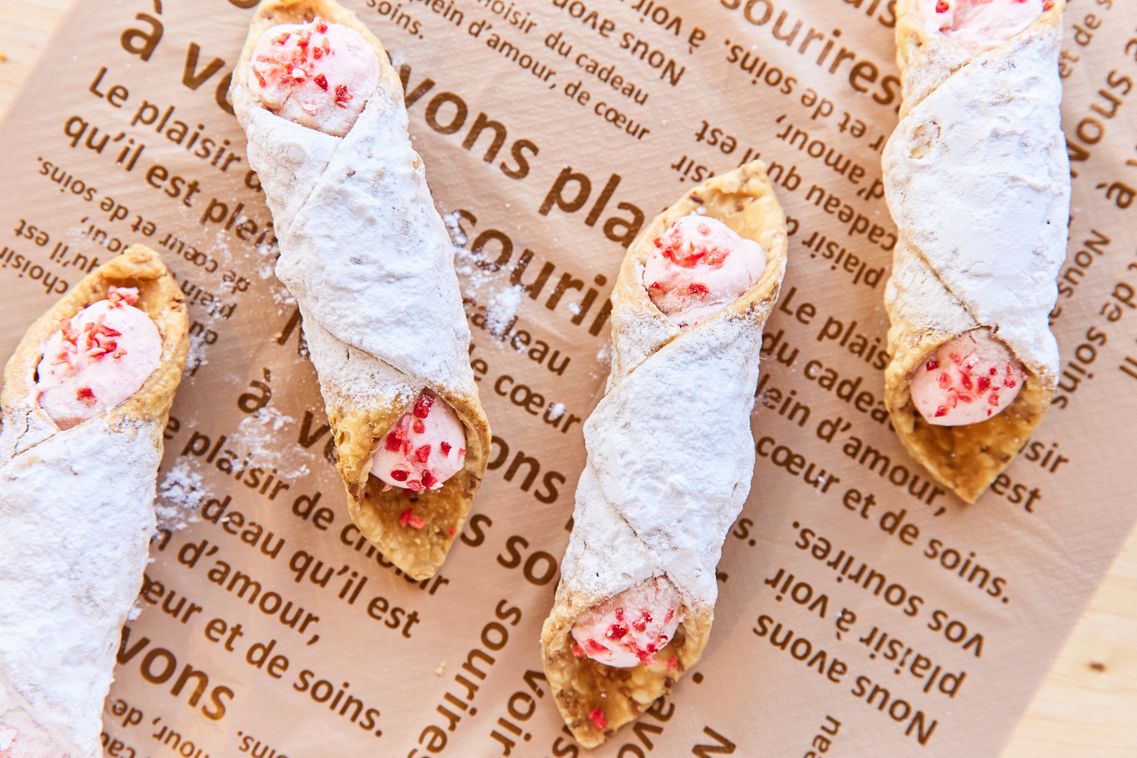 まんまるシュークリームや色鮮やかなケーキ、苺のカンノーリなどがあります。