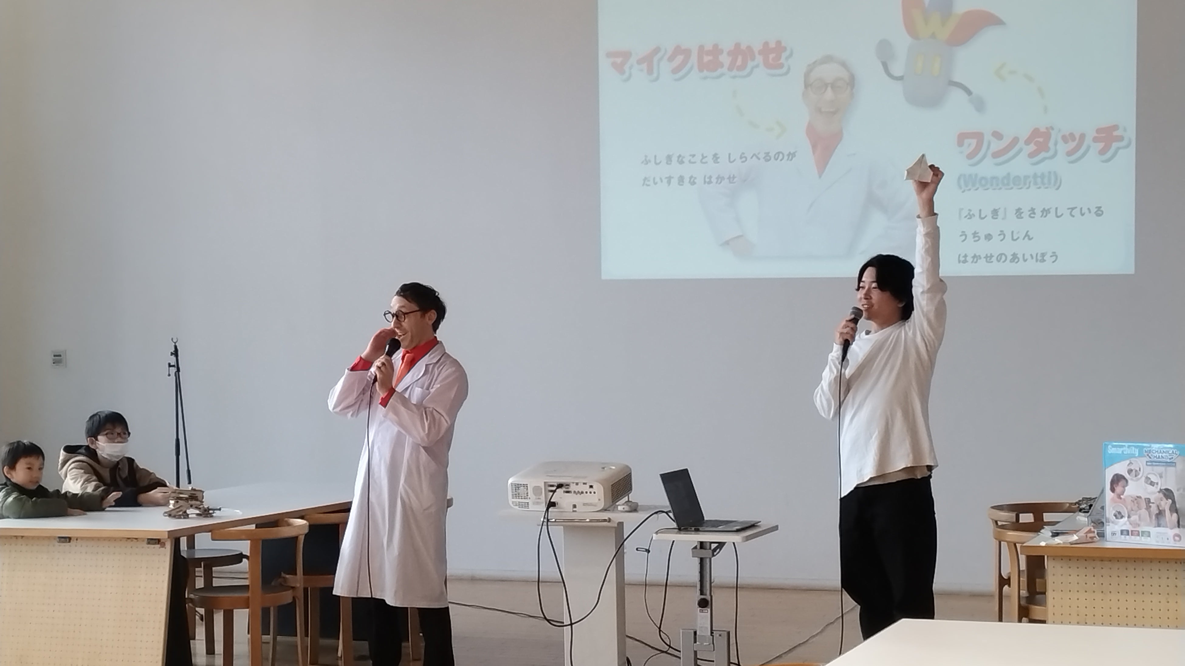 マイクはかせと一緒に、Smartivityの「飛行機発射台」のワークショップが開催されました。