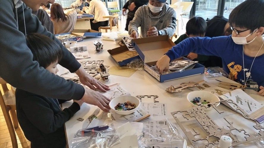 ワークショップでは、マイク博士たちのアドバイスを受けながら、パーツを組み立てました。