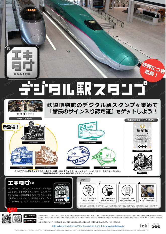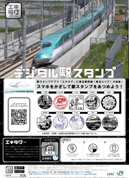 東北新幹線では13駅にエキタグが設置され、鉄道博物館では7100形式蒸気機関車、EF66形式電気機関車、EF55形式電気機関車の3か所に追加されます。