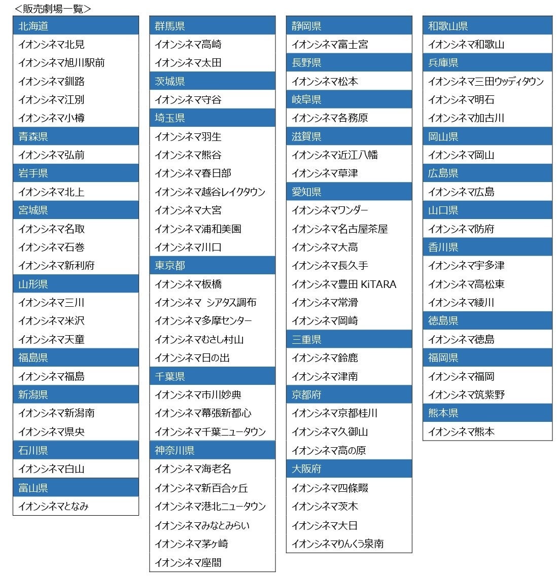詳細は別紙の販売劇場一覧をご参照ください。