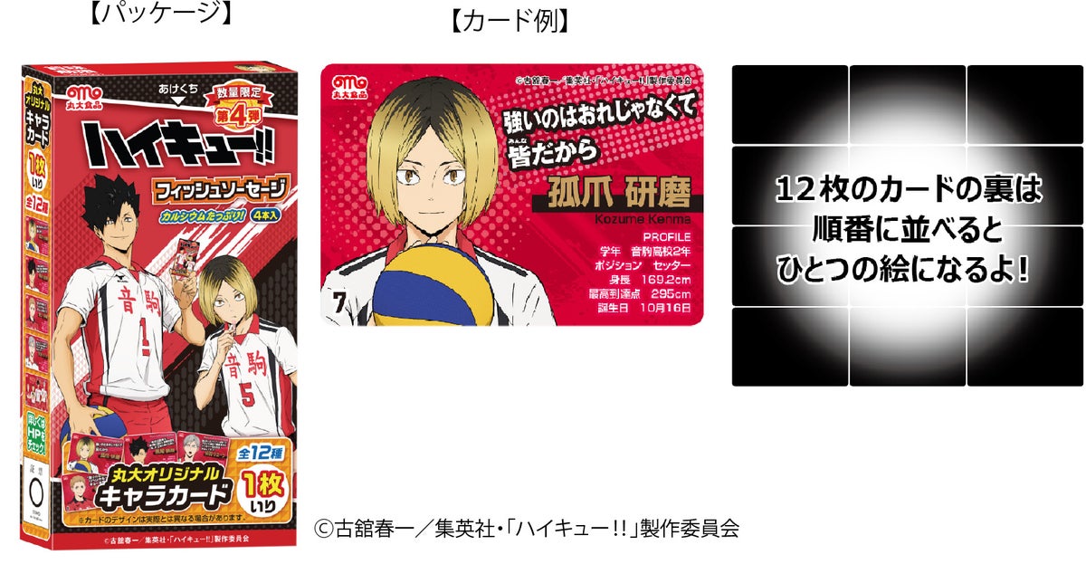- 「ハイキュー‼フィッシュソーセージ」は、フィッシュソーセージを持ったキャラクターたちのオリジナル描き下ろしデザインが特徴の商品。