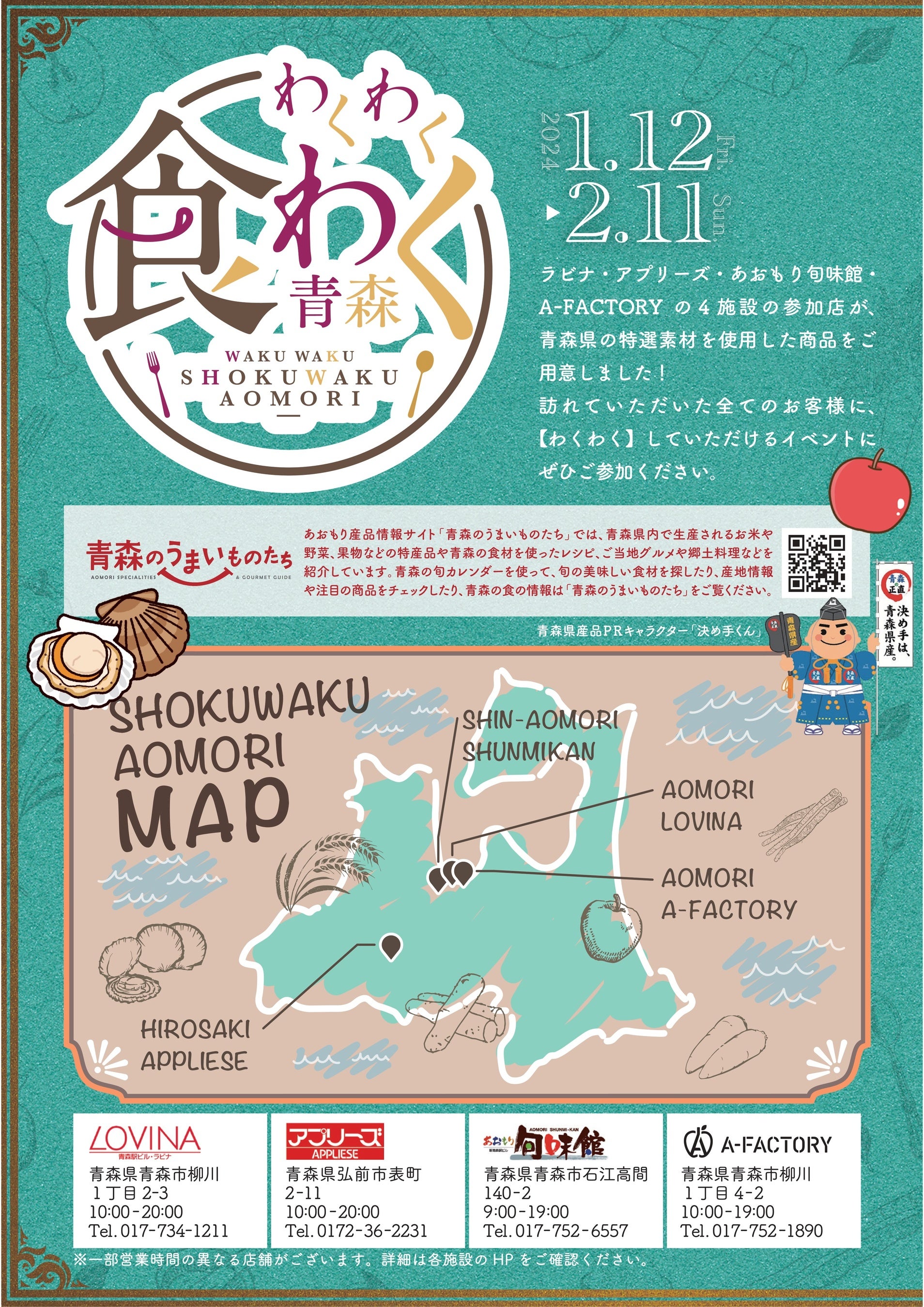 2024年1月12日から県内4施設で行われ、青森県産食材の魅力を発信します。