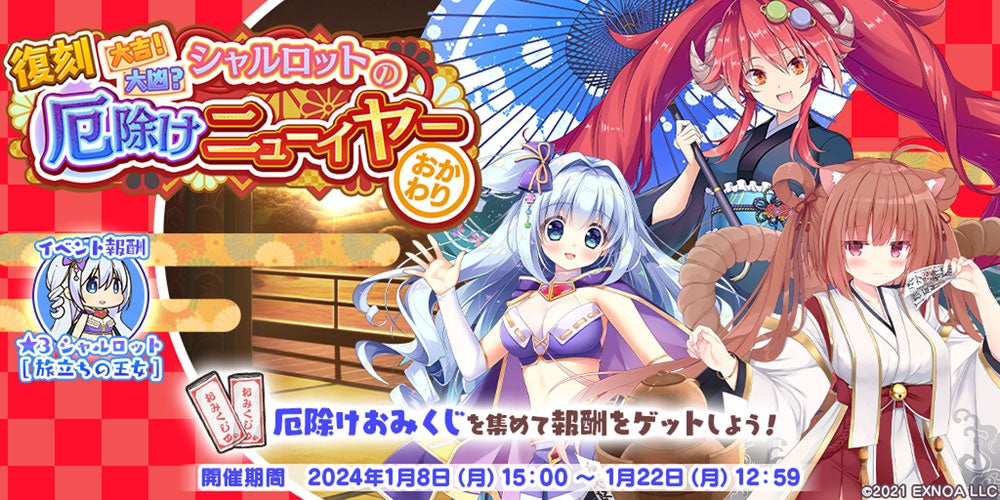 - 2024年1月8日から1月22日まで『復刻 大吉!大凶?シャルロットの厄除けニューイヤー おかわり』イベント開催