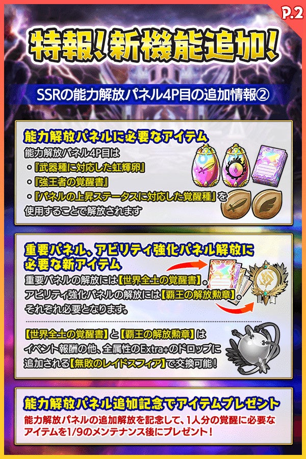 また、能力解放ページに新機能が追加され、新アイテムも登場します。