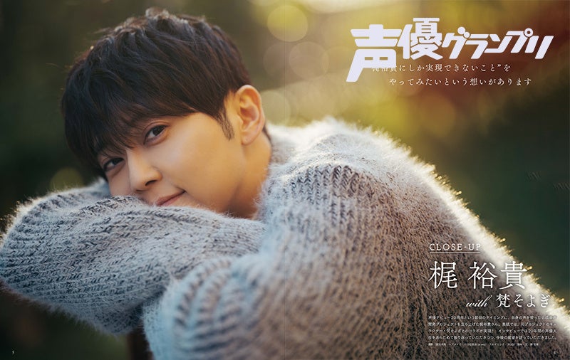 巻頭特集では、梶裕貴さんの20年間の声優活動に焦点を当て、彼自身や仲間たちからの寄稿などで魅力を紹介しています。