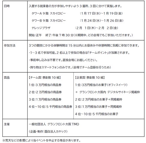 - 参加方法は事前申し込み不要、スマートフォンのみ持参