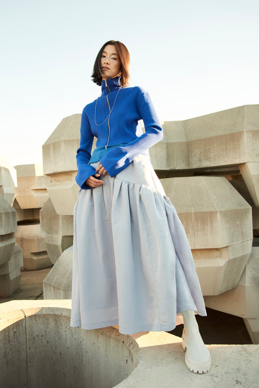 自由で大胆なファッションをテーマに、カラフルなカラーとダイナミックなシルエットが特徴です。