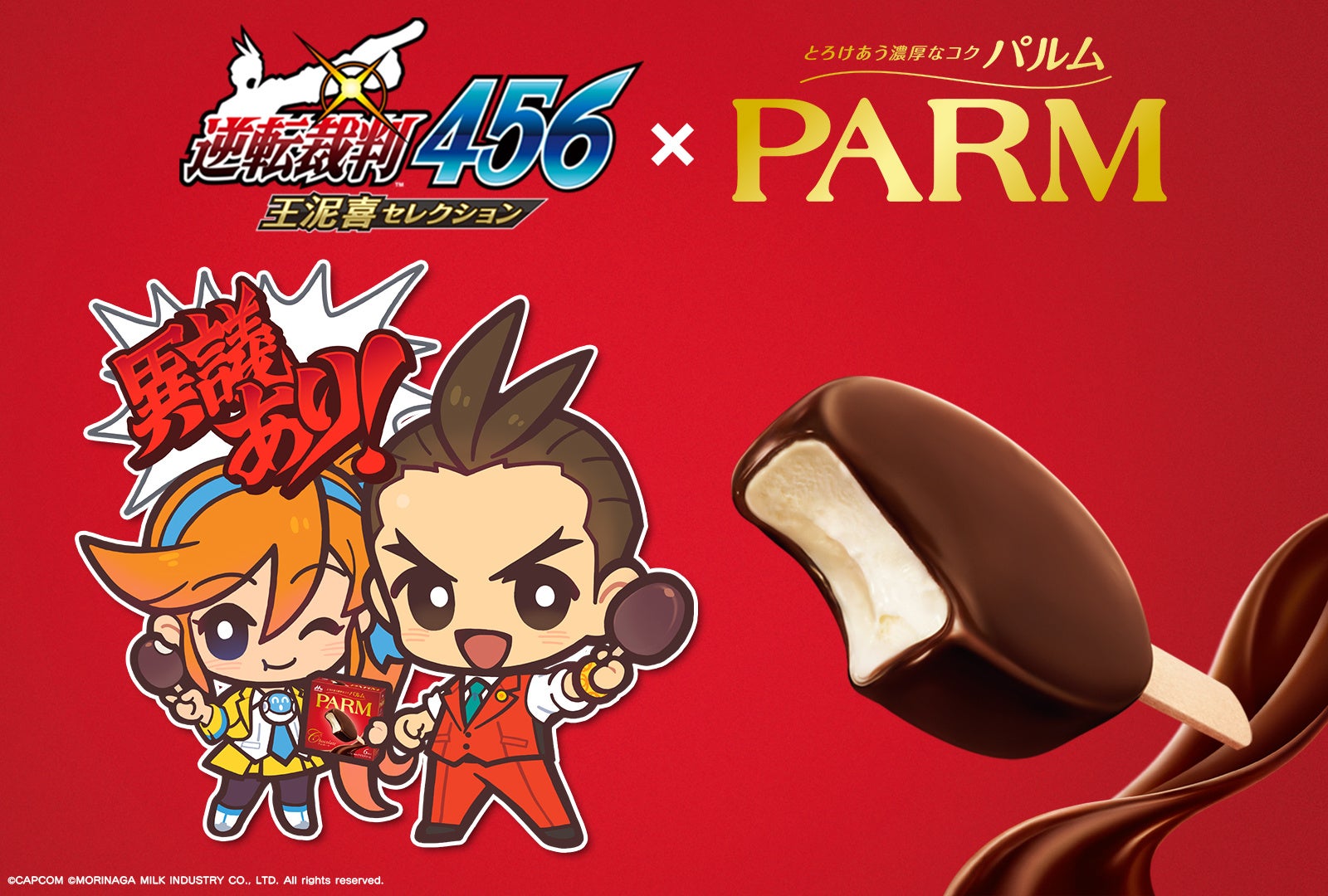 1月25日に発売予定の『逆転裁判456 王泥喜セレクション』と森永乳業の「PARM(パルム)」が、赤いという理由だけでコラボレーションすることが決定しました。