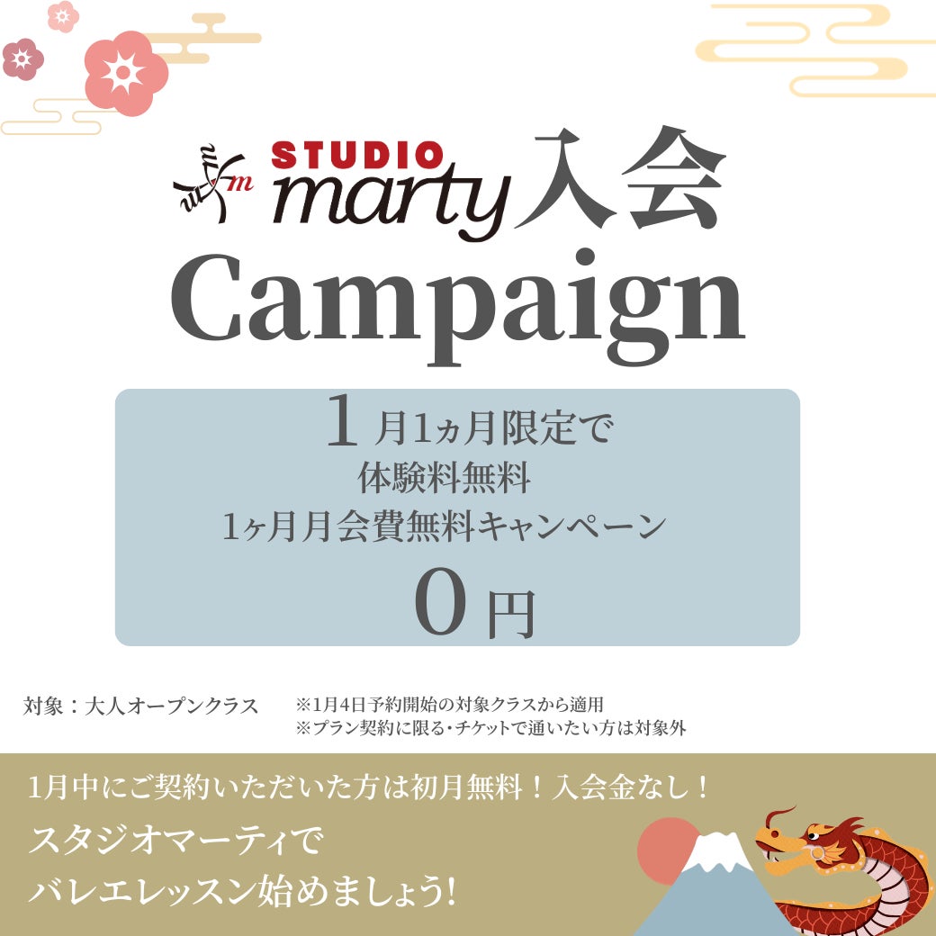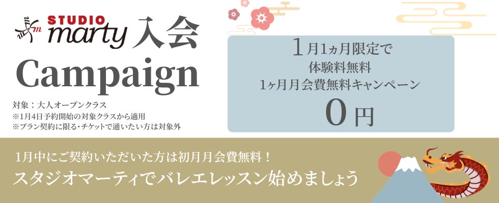 スタジオマーティでは、1月限定でバレエレッスンを1か月無料で受けられるキャンペーンを実施します。