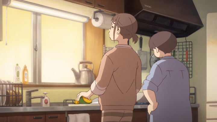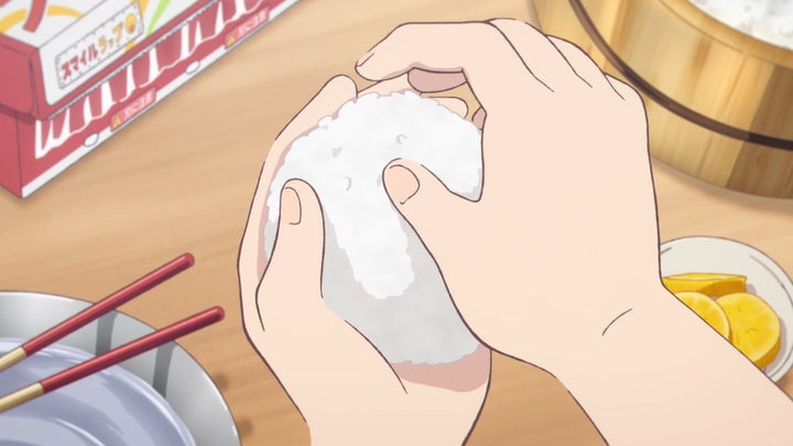 帰省の最終日、はるかを送り出す母は、おにぎりと即席みそ汁を用意しています。
