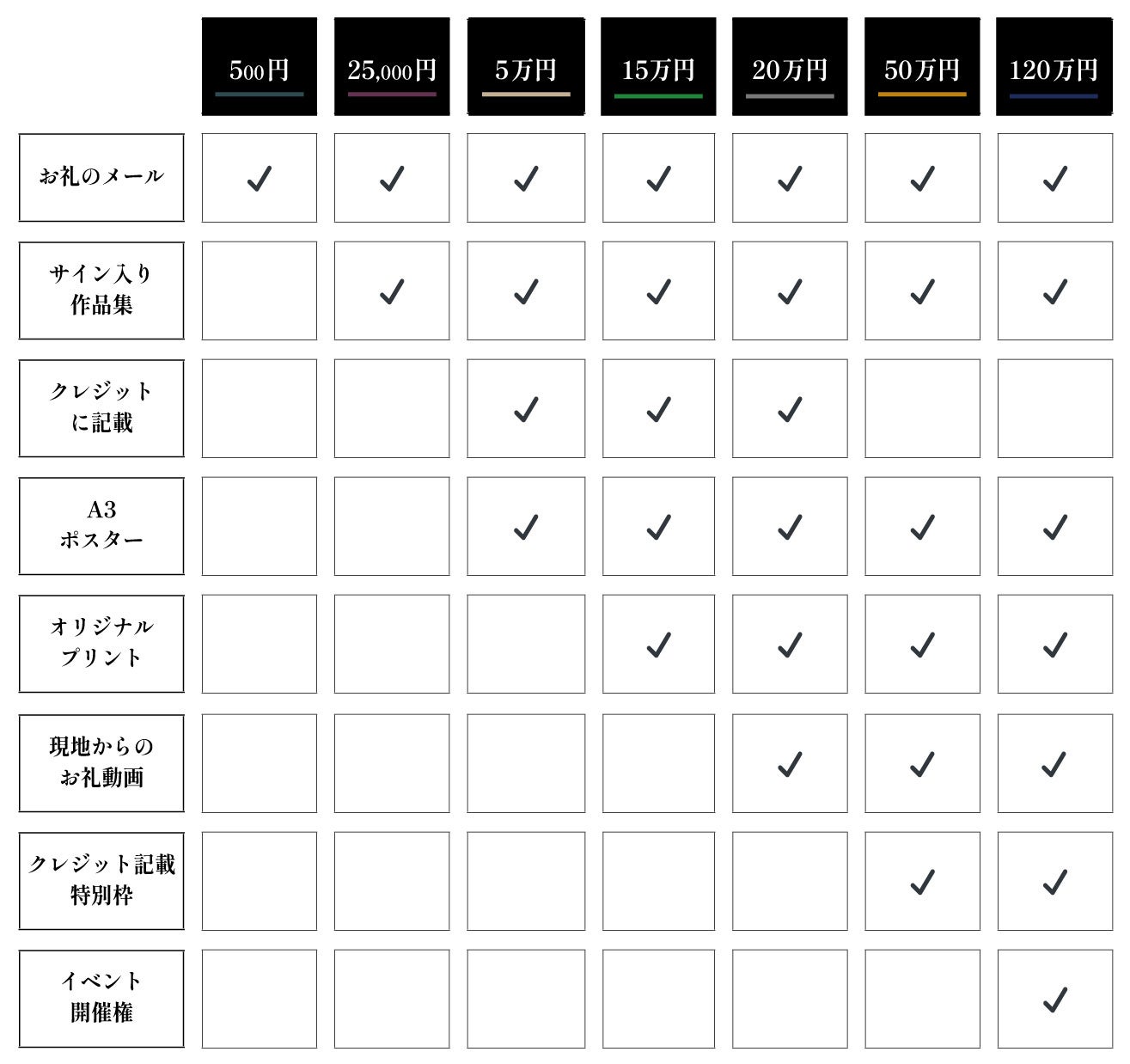 • 支援者には完成した作品集やオリジナルプリント、A3ポスターなどのリターンが用意されている