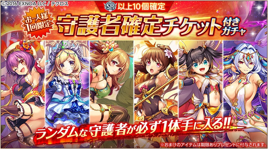 ▼おまけ付きプレミアム10連ガチャ(守護者確定チケット)を開催!