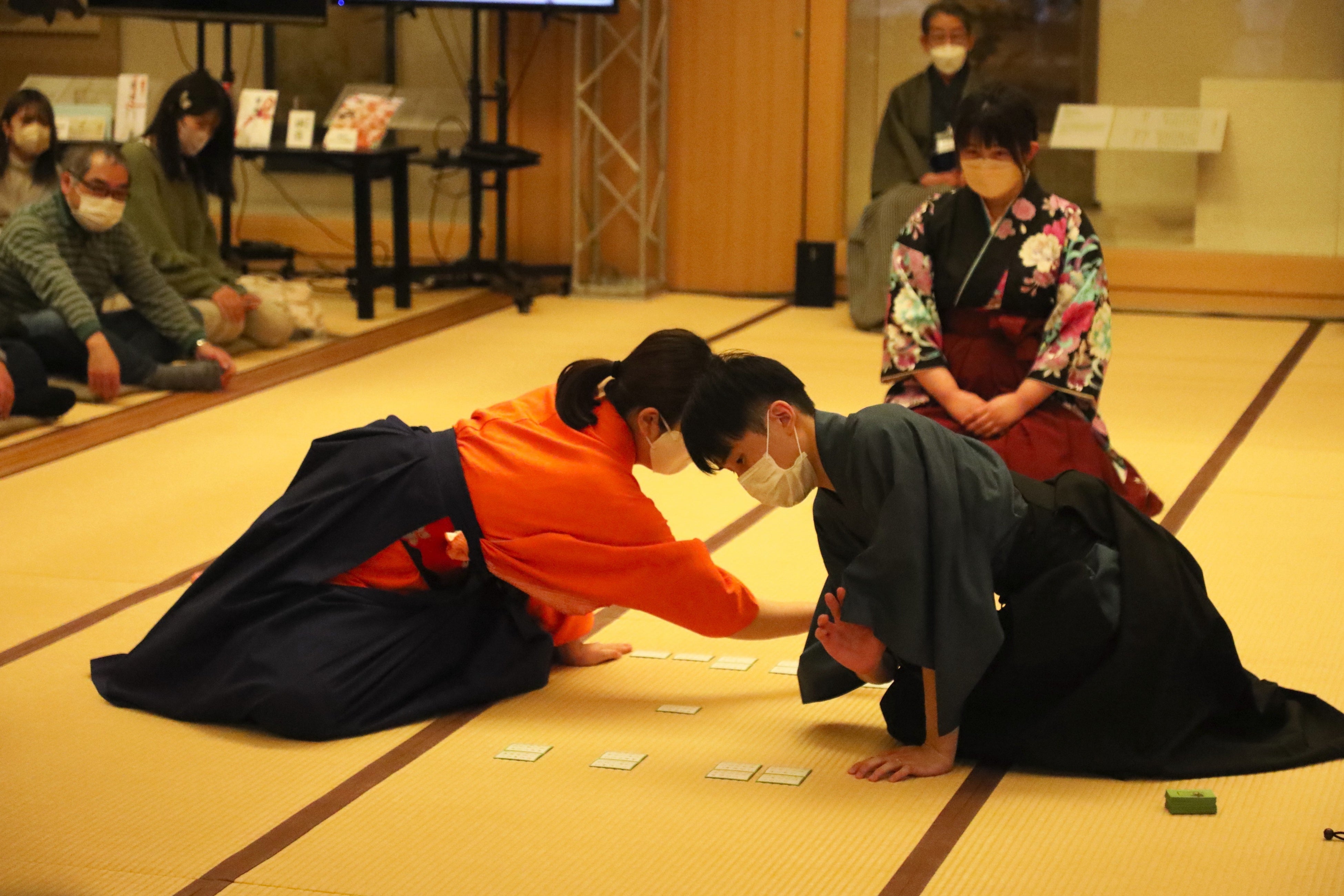 • 競技かるたは札を取る速さだけでなく、集中力や瞬発力も求められる頭脳戦です