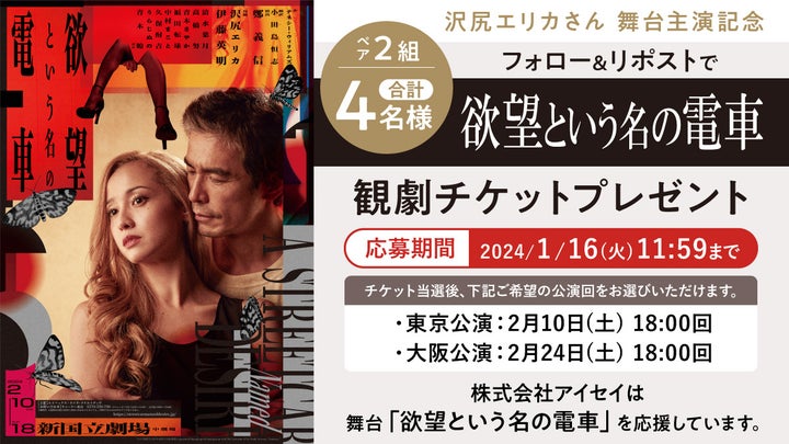 沢尻エリカさんの舞台初主演を応援!株式会社アイセイが『欲望という名の電車』に協賛