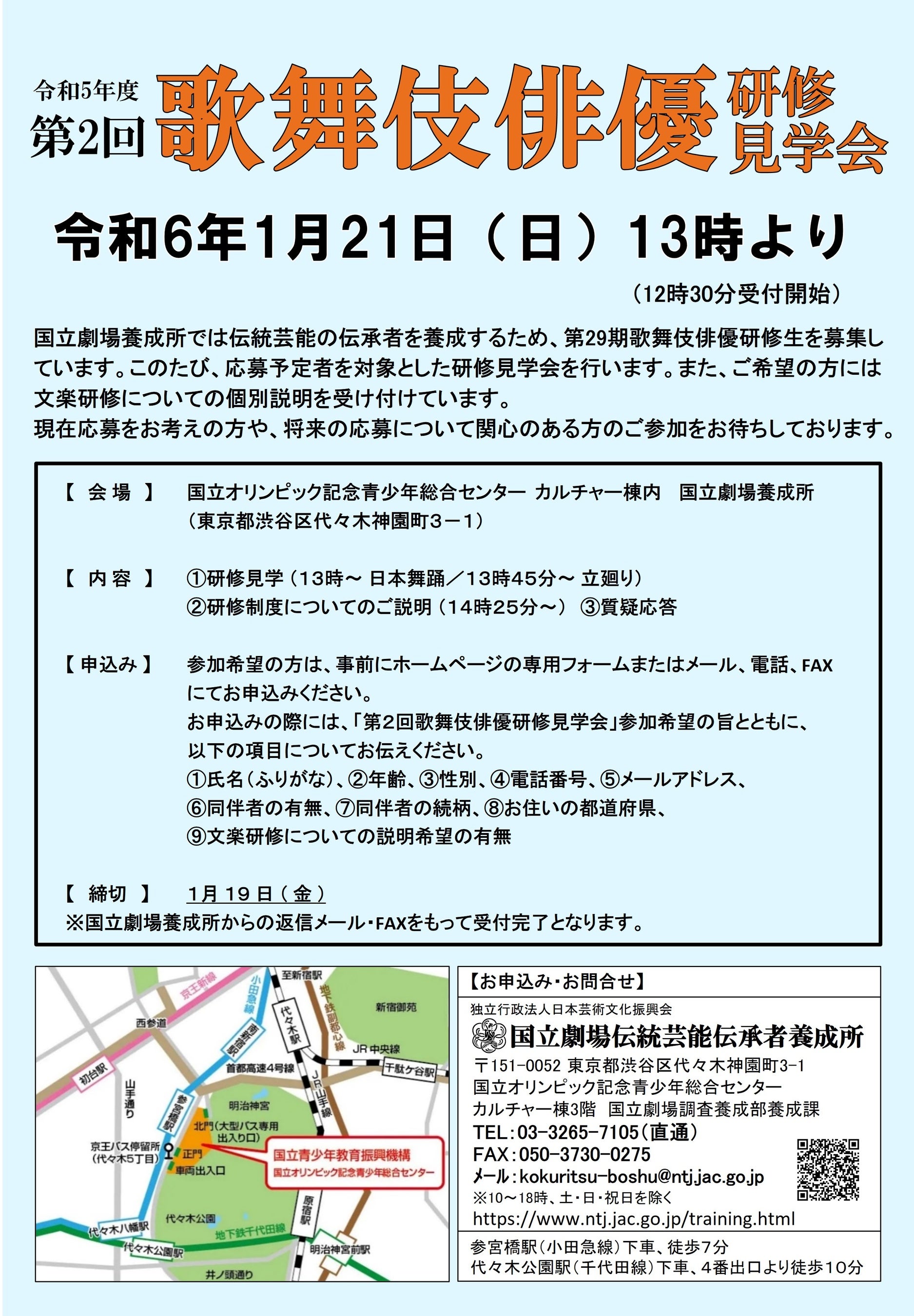 - 歌舞伎俳優研修の見学会は1月21日に東京で開催