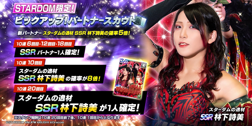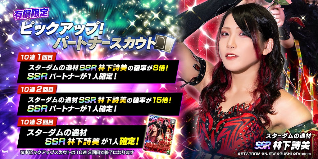 STARDOMから、SSR林下詩美が登場します!STARDOM限定ピックアップパートナースカウトが開催されています。