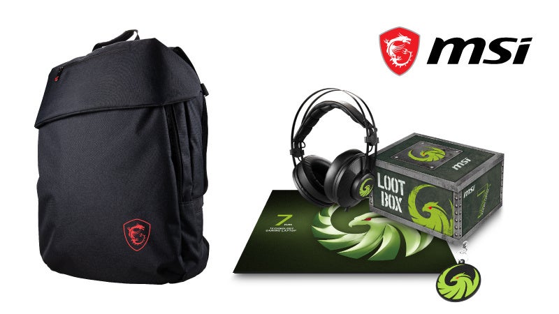 1. MSIゲーミングアクセサリーセット(BOX、ヘッドフォン、マウスパッド、キーホルダー)+バックパック(提供:MSI株式会社)