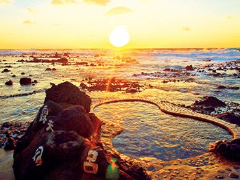 1位は青森県の「黄金崎不老ふ死温泉」で、海までの距離がわずか1mというロケーションで、日本海の絶景を楽しむことができます。