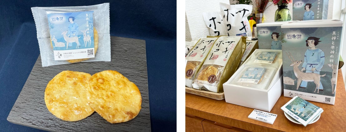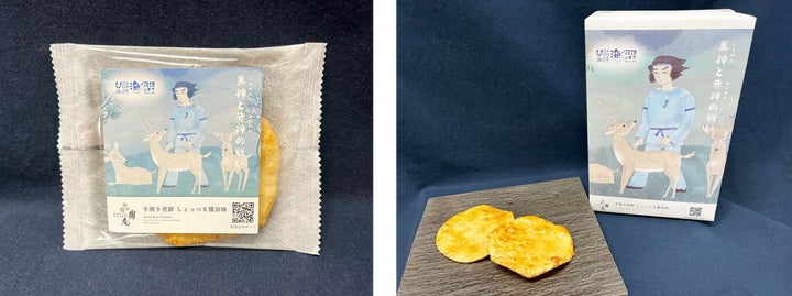 日本昔ばなし協会と日本財団が進める「海ノ民話のまちプロジェクト」の一環で、秋田県の菓子メーカー鼎家から「手焼き煎餅しょっつる醤油味 10枚入箱」が発売されました。