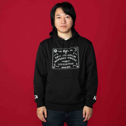 また、口裂け女やウィジャボードのデザインが施されたTシャツやパーカー、さらにはMOMOのぬいぐるみやタオルなども販売されています。