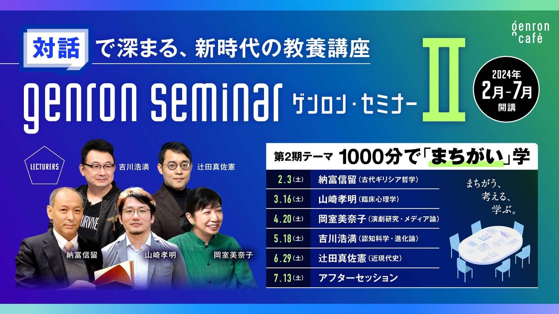 株式会社ゲンロンは、2024年2月から7月にかけて、東京・五反田の「ゲンロンカフェ」で新しい教養講座「ゲンロン・セミナー」第2期を開催します。