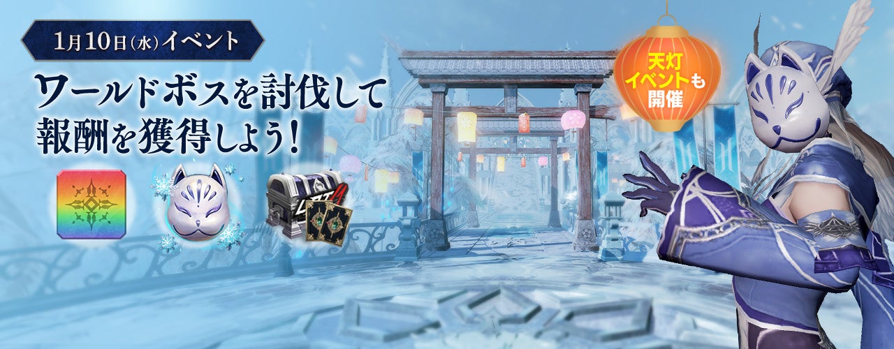 新年を祝う多くのイベントも開催中で、おみくじやワールドボス討伐イベントで豪華な報酬を手に入れることができます。
