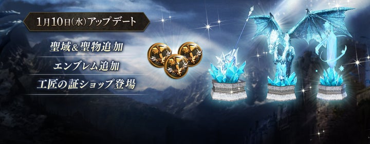 - アップデートでは新聖物やエンブレムの追加、戦士の証ショップのリニューアルも