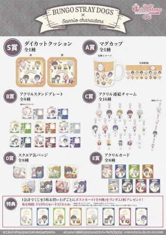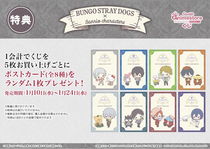 - 「文豪ストレイドッグス×サンリオキャラクターズ」のオンラインくじ「サンリオアニメストアくじ」が2024年1月10日から販売される
