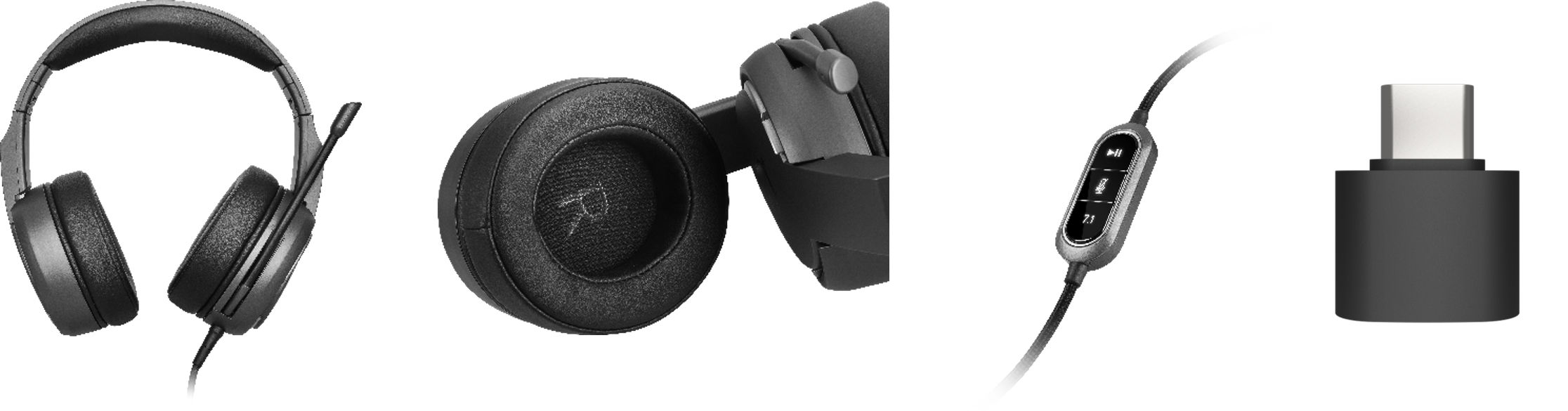 本製品は、ENC(環境型ノイズキャンセリング)に対応したMSI製ゲーミングヘッドセットで、マイクに取り込まれる環境ノイズを打ち消し、低ノイズの音声を伝えることでクリアなコミュニケーションを可能にします。また、重量は268gと軽量のため、長時間のゲームプレイに向いており、40mmネオジムドライバーとバーチャル7.1chなどの機能を搭載しており、快適なゲーム体験をお届けします。