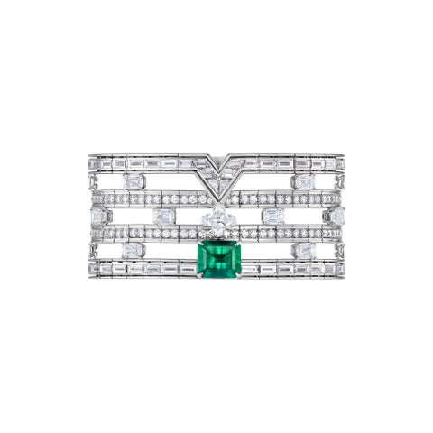 - ブラックのダブルブレストのウールタキシード、スパンコールのフラワーモチーフが刺繍されたガウン、ヘリテージ·ダミエのレッド·ウール·イブニングジャケット、エメラルドグリーンのサテン·スリップドレス、ブラック·ウールのマンダリンカラー·テーラードジャケット