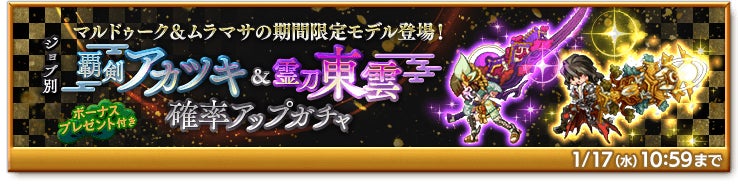 「ジョブ別 覇剣アカツキ&霊刀東雲確率アップガチャ」も販売中です。