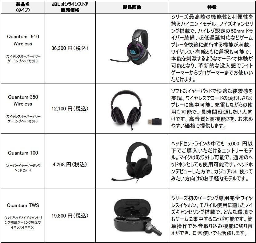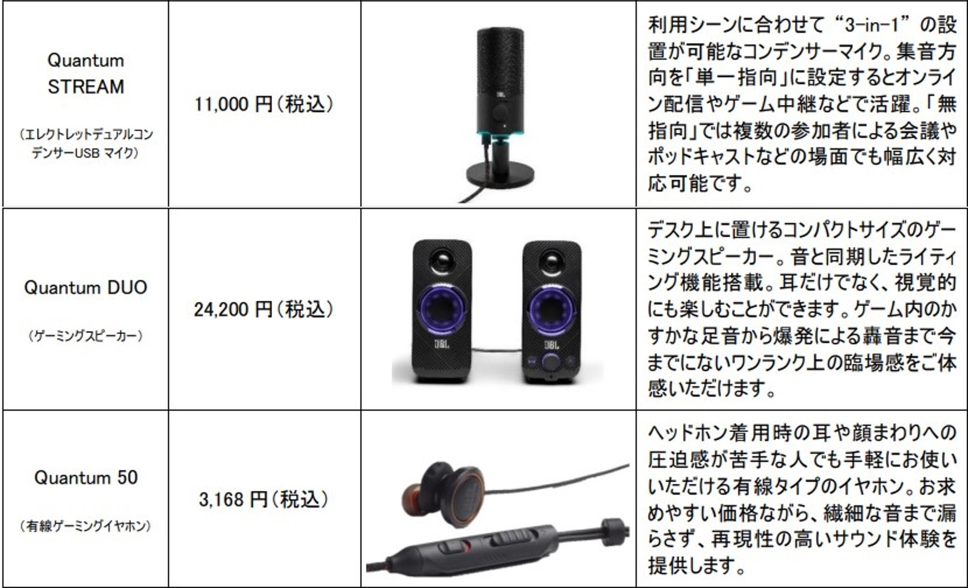 ※すべての製品情報は公式サイト(https://jp.jbl.com/quantum-series.html)よりご覧ください。