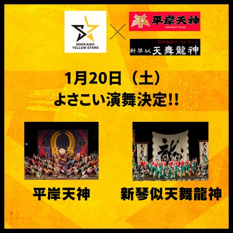 北海道イエロースターズホームゲームでよさこい演舞「平岸天神」と「新琴似天舞龍神」が決定!