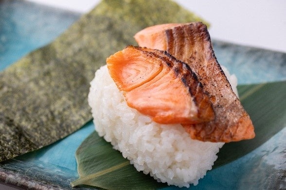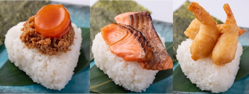 また、厚切りにした北海道秋鮭の塩焼きを乗せた鮭おにぎりや、自家製のだし醤油を絡めた海老を積み上げた天むすおにぎりもあります。