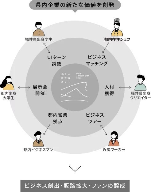 カフェの他にも、ふくい南青山291には飲食スペースやイベントスペース、ワークスペースがあり、福井と都市圏の人々が交流できる場所となっています。