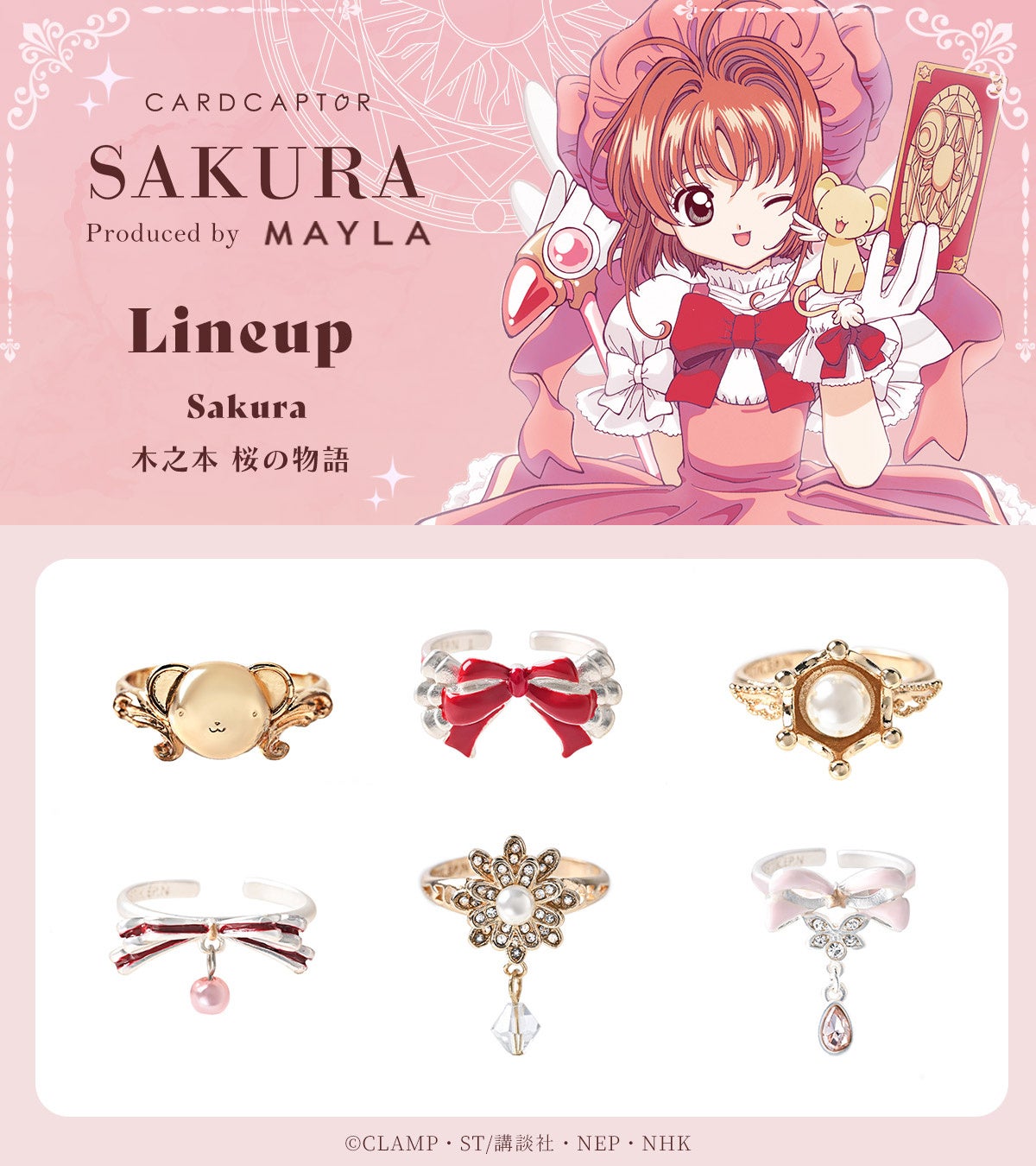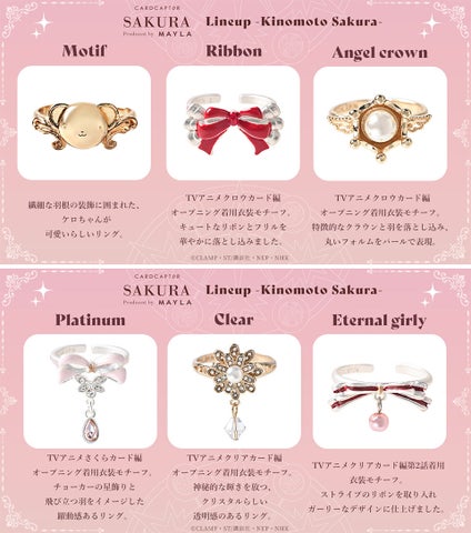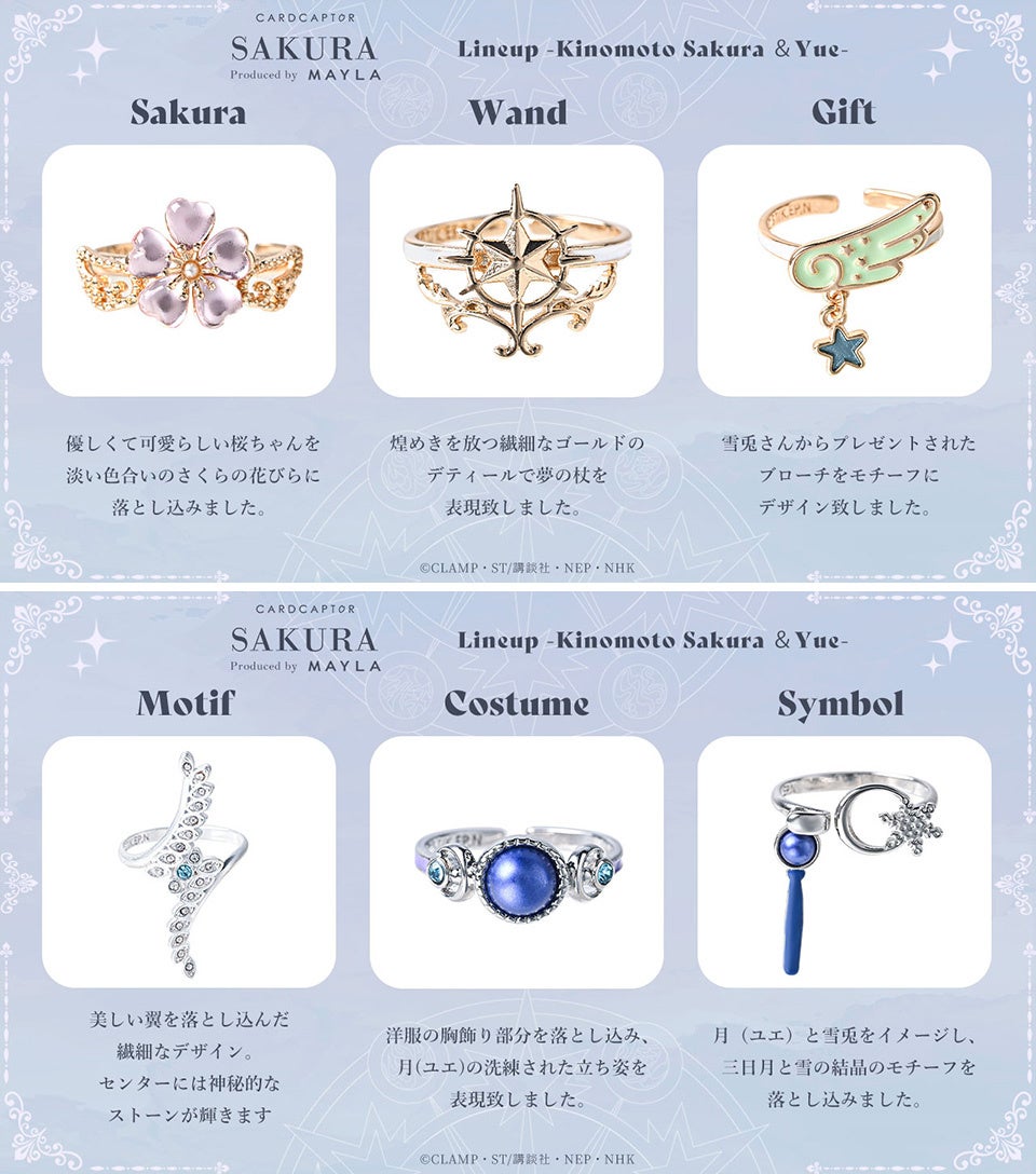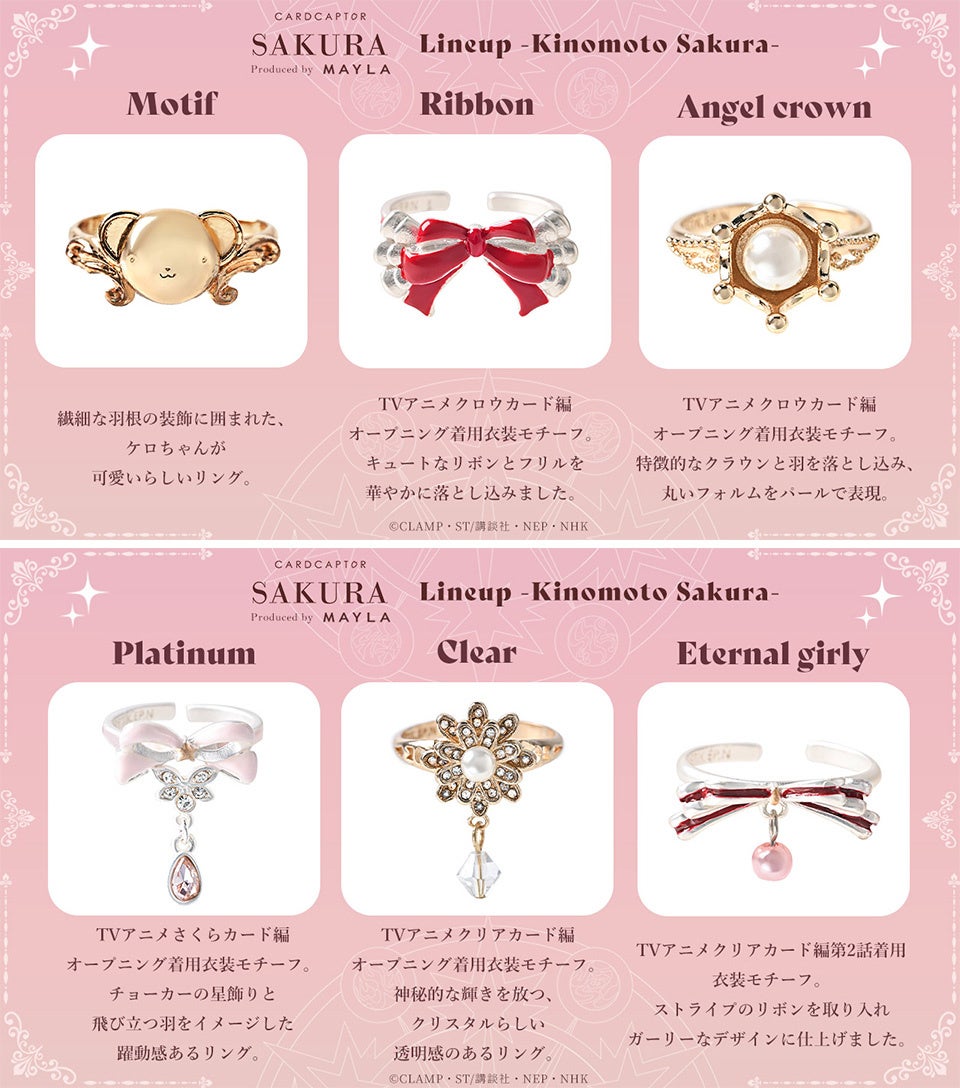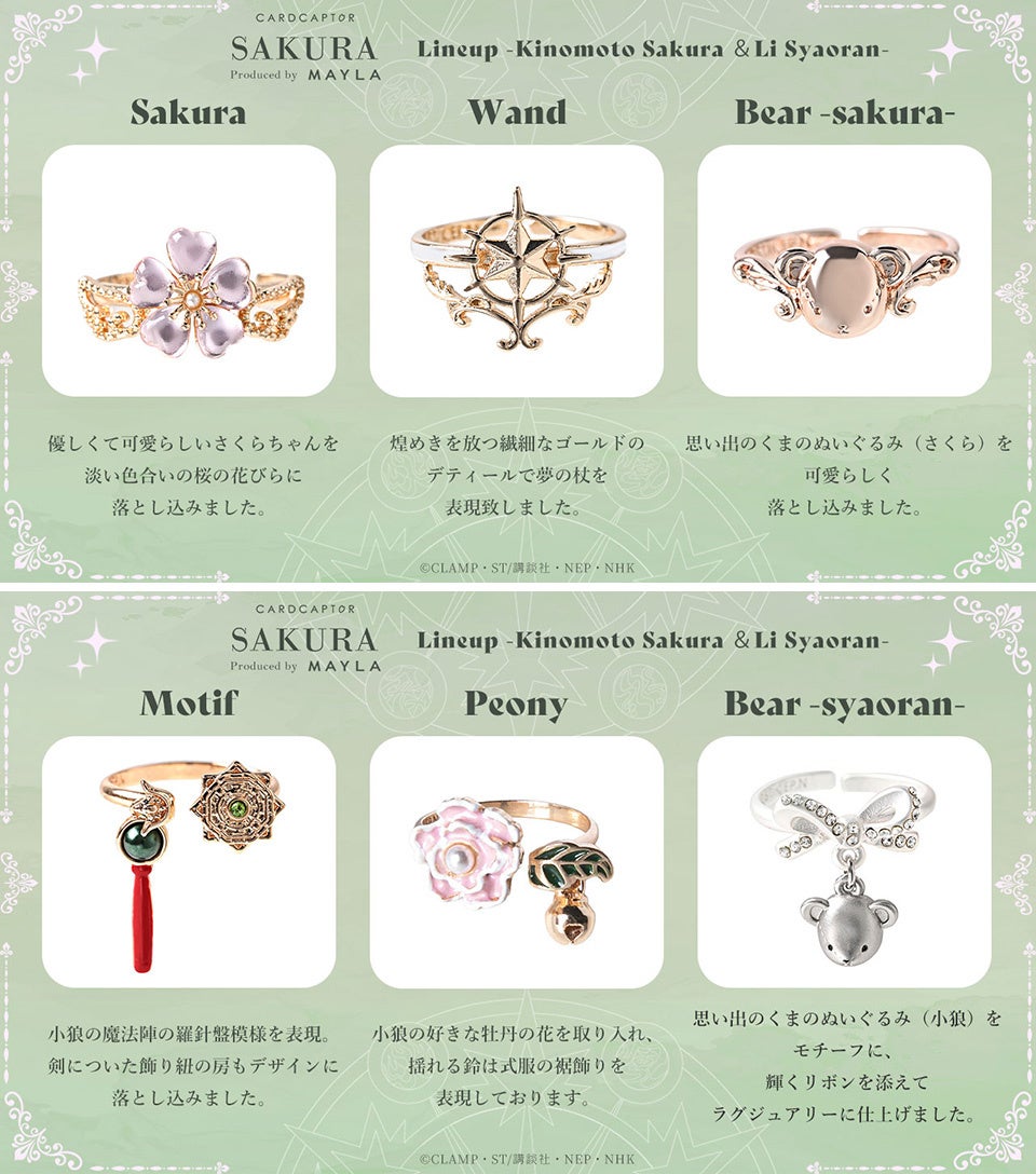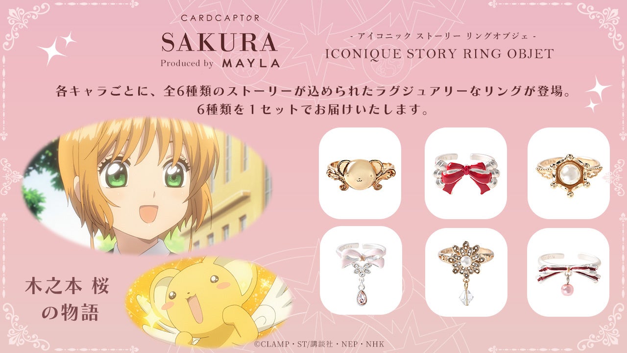 「カードキャプターさくら」のアイコニックなストーリーリングオブジェが登場しました!各キャラクターごとに6種類のストーリーが込められた、ラグジュアリーなリングです。