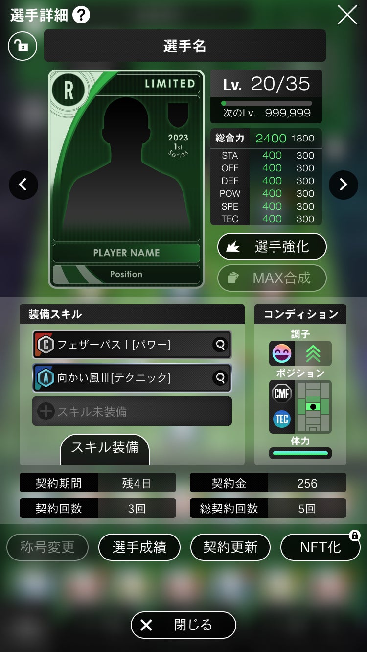 - 選手カードの価値が高まり、NFTとしての二次流通が活発化することが期待される。ログインプレゼント企画や友達招待企画、初心者応援フェアも実施