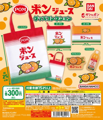- 「ポンジュース グッズコレクション(1回300円)」は、鮮やかで可愛いパッケージデザインのアソートグッズコレクション