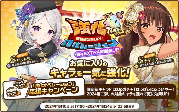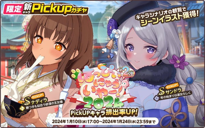 - 2024年1月10日から正月限定新キャラPickUPガチャ【はっぴぃにゅういやー!2024第2弾】が開催中