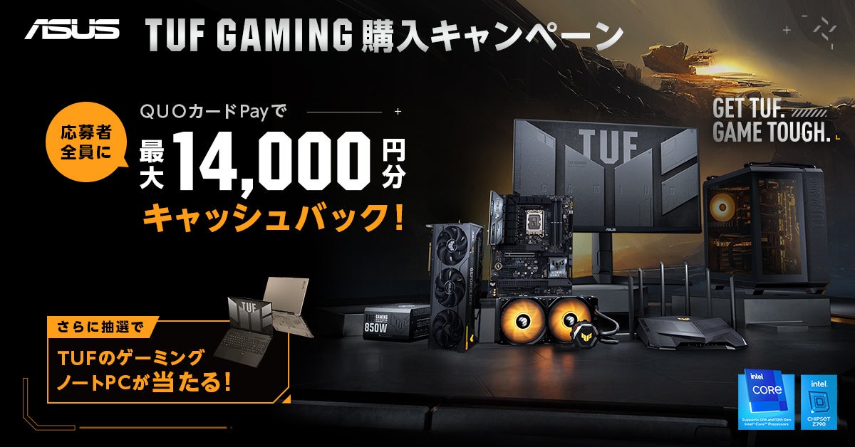 - 1. ASUSのゲーミングシリーズ「TUF GAMING」の製品を購入すると、最大14,000円分のキャッシュバックがもらえる。