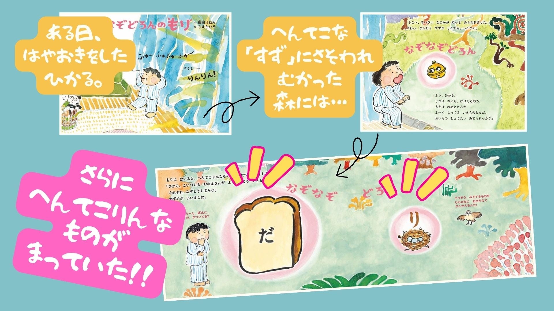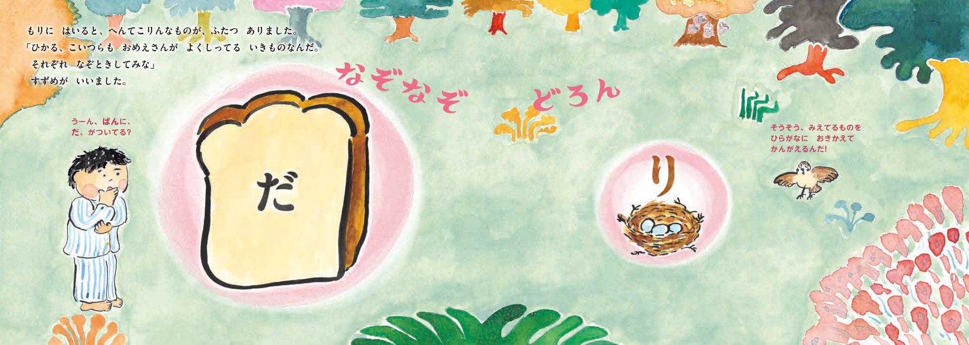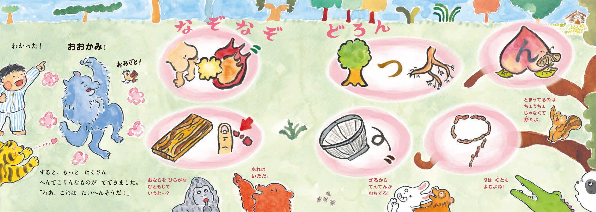 - 「なぞなぞどろんのもり ひらがなであそぼ!判じ絵えほん」は、日本古来の言葉遊び「判じ絵」を現代版にした絵本